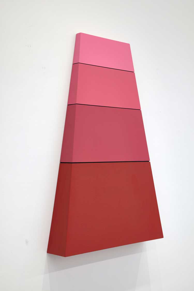 Ronald Davis. Rose Red Taper, 2009. Acrylics on expanded PVC plastic, 47.63 x 31.75 x 6 in. Artwork Copyright © Ronald Davis. Courtesy David Richard Gallery. Photo: Yao Zu Lu.
