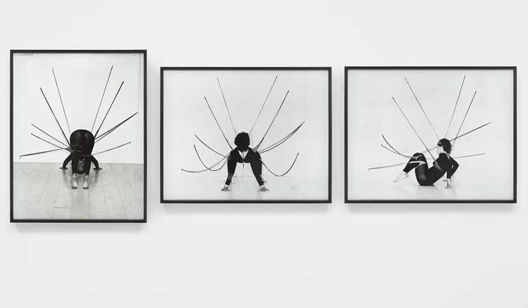 Senga Nengudi, Performance Piece, 1977 (detail). Silver gelatin prints, triptych, overall dimensions, 300.8 x 104.1 cm. Courtesy Sprüth Magers and Thomas Erben Gallery, New York.