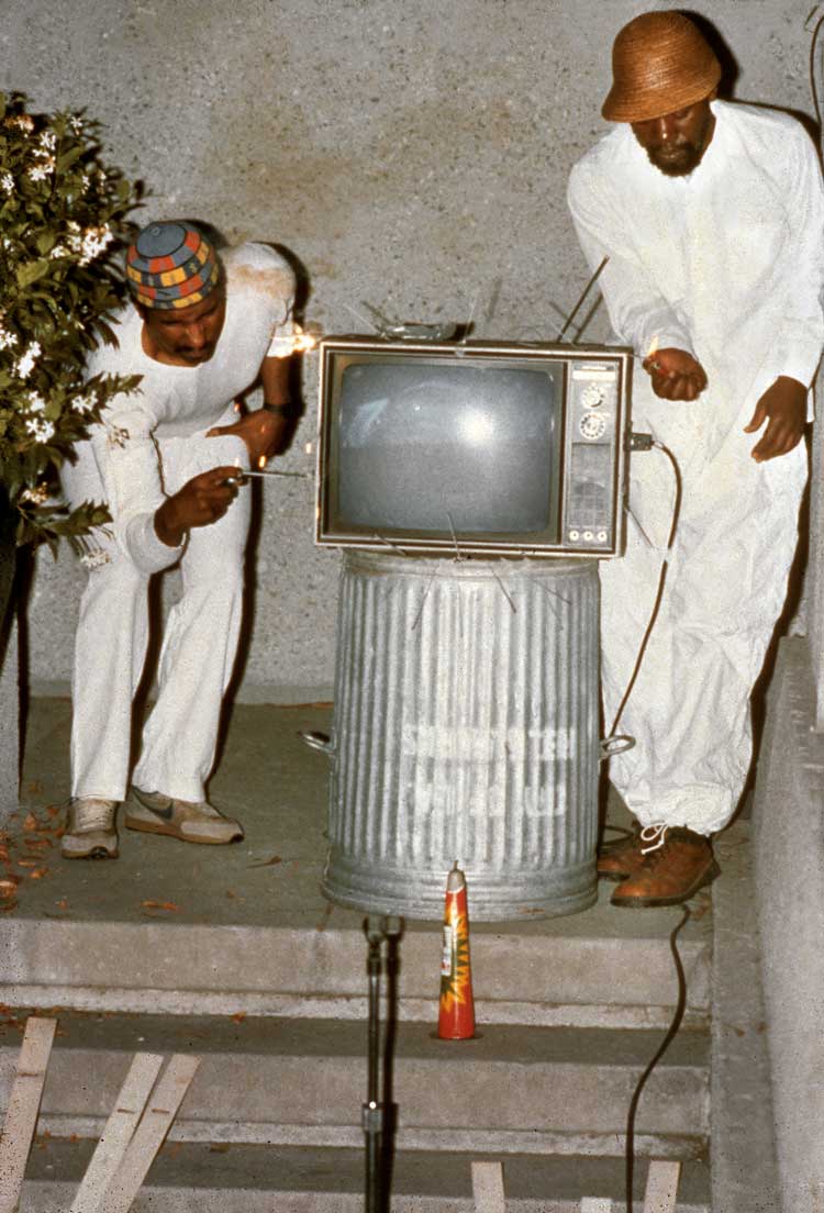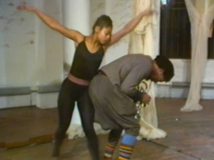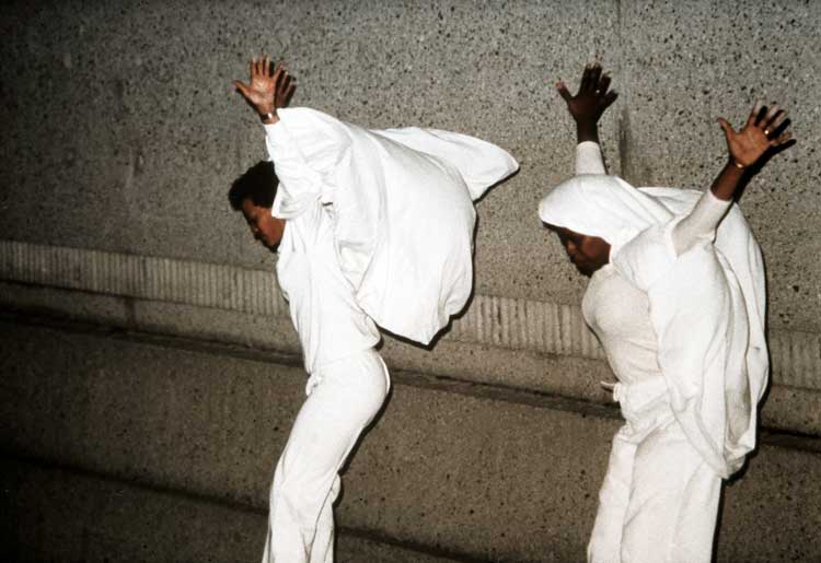 Senga Nengudi with Cheryl Banks and Lawrence D. 'Butch' Morris, Air Propo, 1981 (Film still). Single channel video, colour, with sound 10:45 min. Courtesy of Sprüth Magers and Thomas Erben Gallery, New York.