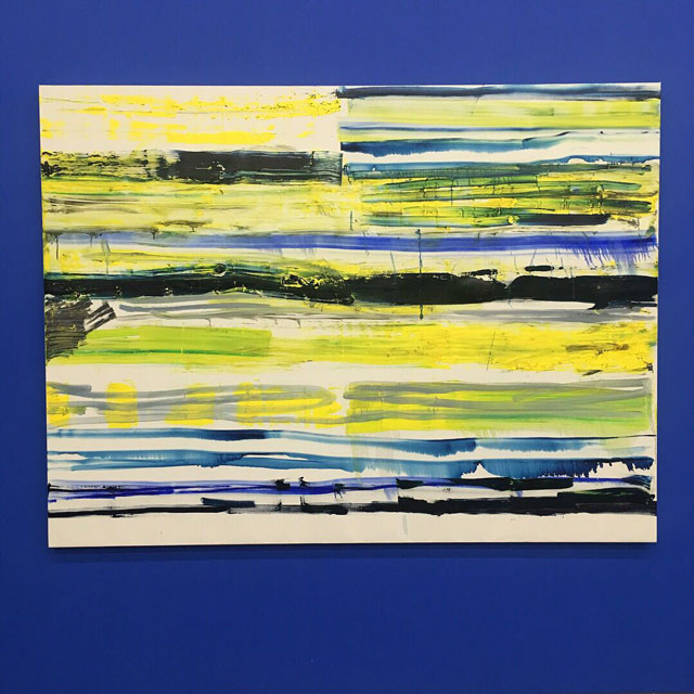 Indeed, Shonky is celebratory – in its clownish performances, it presents the spectacle of modern art as a kind of circus. Life like busts by Andrew Logan of pop cultural icons, such as Molly Parkin, Divine and Fenella Fielding, are poised next to canvases of neon shades by Louise Fishman, while, in the middle of the space sits a jumbled heap of cardboard and bright yellow, feather-like paper – Mexican-American artist Justin Favela’s Floor Nachos, 2017 – which explores cultural appropriation in his adopted home city of Las Vegas.