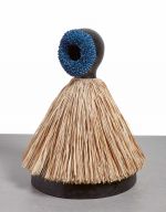 Cupboard (2022), another version of the series, substitutes a ceramic cowrie shell for the figure’s head, placed on a domed steel hoop covered with raffia that, again, suggests a village dwelling, once again equating the female body with home conceptually and house structurally. Leigh, who only in the last few years has been working in bronze and steel – the choice and combinations of materials also political, metaphoric, from the fragile to the unbreakable – is a masterful ceramist and an ardent advocate of an ancient medium still dismissed at times by the western art world as the lesser production of marginal societies and as handicraft to be executed by women (although few non-western civilisations concur, considering it one of their highest forms of aesthetic expression – but, if so revered, are usually, inevitably credited to male artists.)