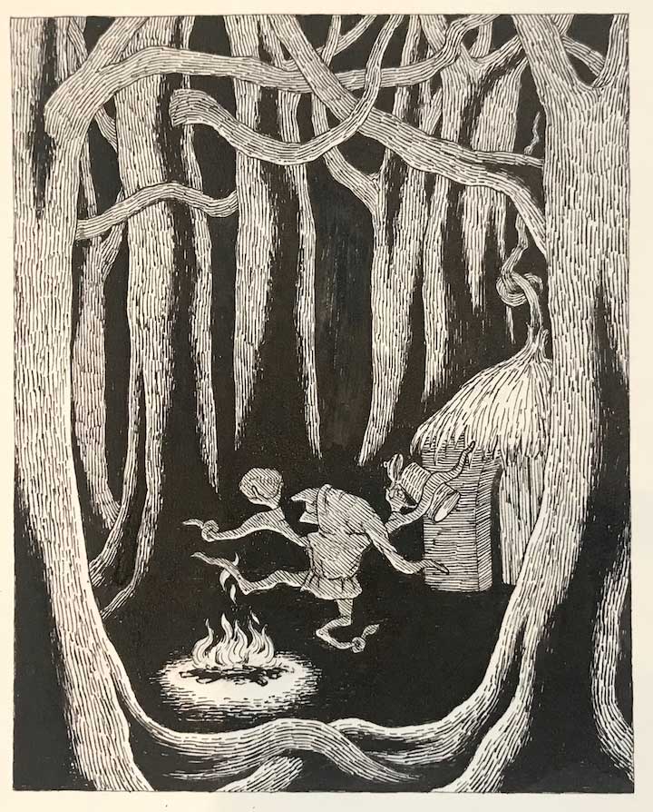 Tonight my cakes I bake... from Rumplestiltskin, published by Scholastic Books 1973. Courtesy of The Edward Gorey Charitable Trust.