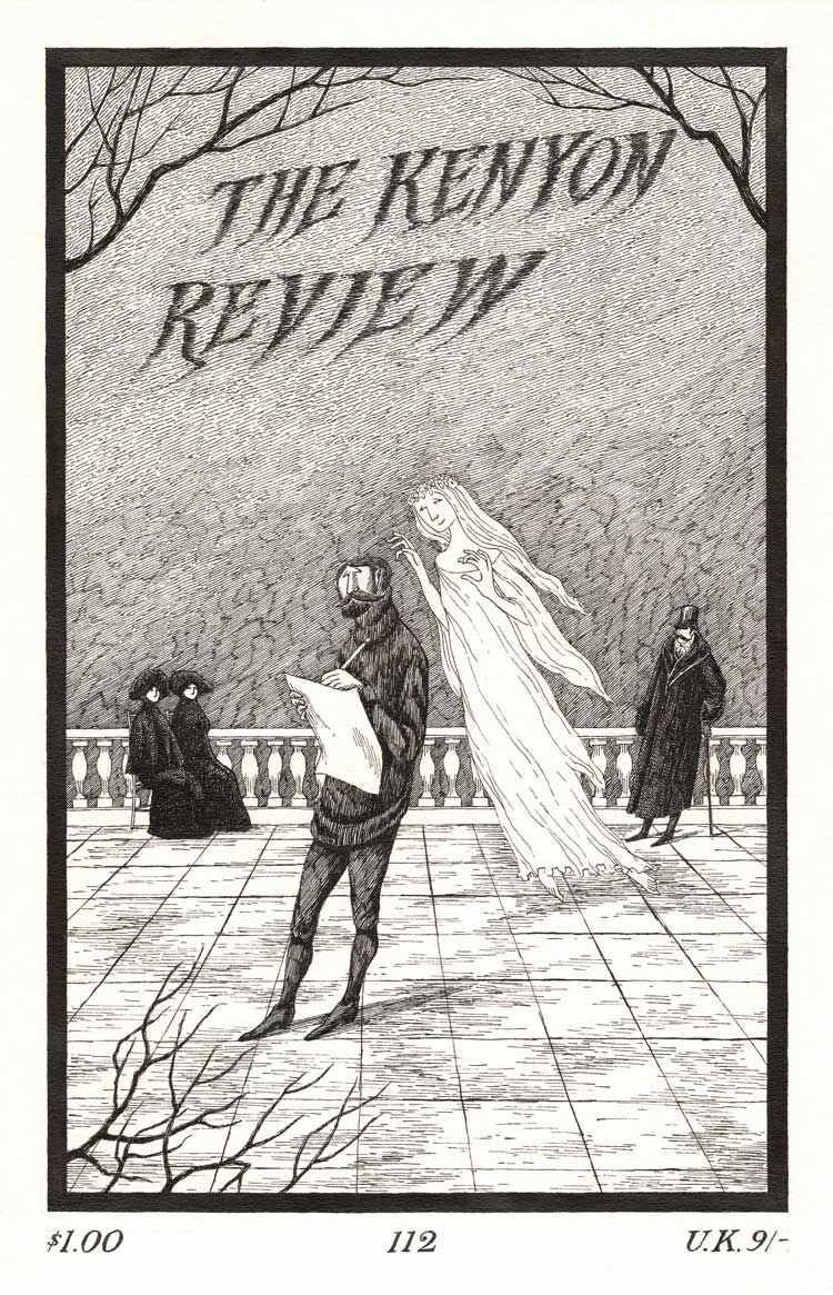 Cover art for November 1966 issue of The Kenyon Revue, 1966. Pen and ink on paper. From the collection of Irwin Terry and Bill Campbell. Courtesy of The Edward Gorey Charitable Trust.