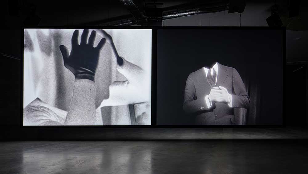 McQueen’s handling of this historical material is presented as a two-channel video projection, installed at the recently opened Depot Boijmans Van Beuningen, which made its debut at the 52nd edition of the Rotterdam Film Festival. Various narratives from The Jazz Singer are conveyed through clips that include Jakie rehearsing before the grand performance that marks the film’s finale, a ceremony that takes place at a synagogue, and appearances by Jakie’s mother, who remains faithful to her son despite the altercation with his father.