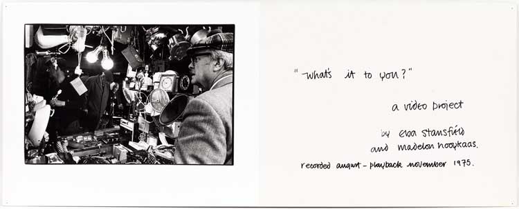 The chronologically later images in the exhibition are often, though not exclusively, collective and taken by women working together in their communities in Glasgow. By the mid-1970s we see the beginings of these sorts of projects with What’s It to You? (1975), a collaboration between Elsa Stansfield and Madelon Hooykaas in the early years of video art. Combining photography and text with recorded and live video, interviews with members of the public changed the work daily. While the original work is lost, the remaining photographs show the Barras and Sauchiehall Street areas along with brief but quite profound questions asked about the show: Have you grown as much as the city? Has the city changed as much as you? What are you looking for? What are you offering?
