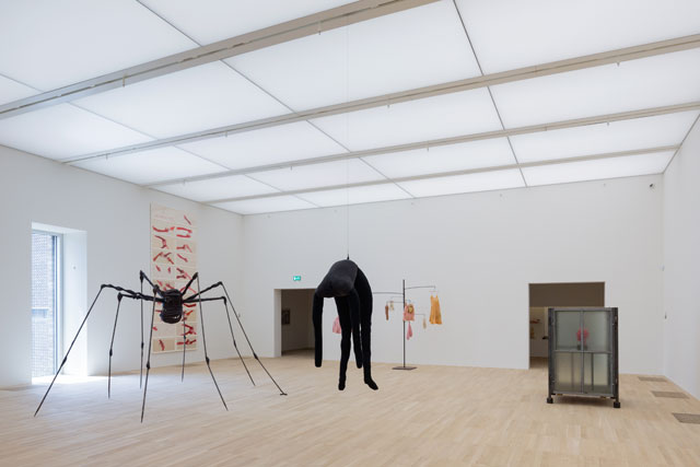 The galleries are mostly vast rooms with generous ceiling heights, which allow visitors to move freely between sculptures, installations and wall-mounted works, their white walls occasionally punctured by a vertical slice of Bankside daylight. Dedicated artist rooms offer opportunities for both intimate examination as well as wider perspectives; the Louise Bourgeois room is a perfect mini-immersion into her world. Smaller rooms occurring around or within the bigger ones create opportunities for screenings, focused contemplation or reflection – Ricardo Basbaum has picked one of the most interesting corners in a building of many corners for his experiment of inhabitable cages (Capsules NBP x me-you); currently the selfie sweet spot du jour. And, between these rooms, spacious lobbies offer comfortable seating in all shapes and sizes, from curving benches to cushioned window seats.