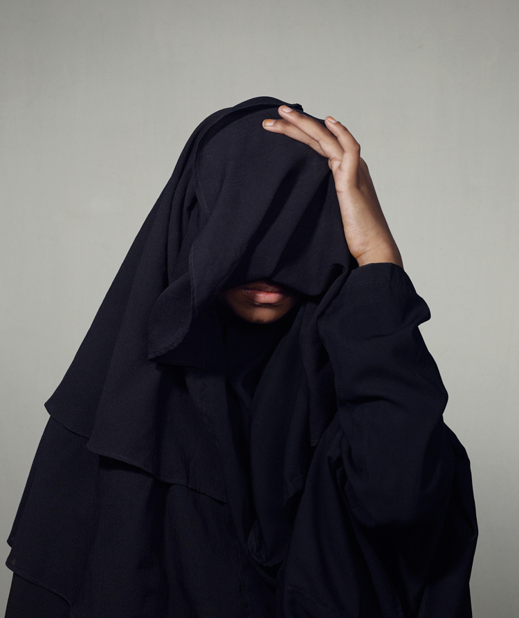 Amsterdam-based Jouk Oosterhof presents examples from her photographic series Invisible, in Focus: Child Brides in Bangladesh (2018). A high percentage of girls in Bangladesh are married before they are 18 and many before they are 15. Oosterhof’s portraits hide the girls’ faces to protect their identities, although this also underscores their invisibility within their society. This seems especially so in the instance of Anika, 13 years (September 2018), the youngest sitter shown and most hidden from view.