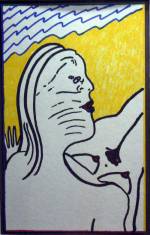 While the theme of transformation runs through the entire show, it is most vigorously pursued in the "Bob" series of paintings, which are installed in the second room of the exhibition space. Here, Lynch demonstrates his desire to create a distorted universe. Bob is a character who appears on a series of large-scale paintings. In an interview, Lynch stated that Bob has no relation to one of his most famous characters, the Bob from the Twin Peaks television series. But the Bob of the paintings appears in situations very much like those experienced by the character in the show. Strange things happen to Bob just as if they were very ordinary and very normal. "Do You Want to Know What I Really Think?" (2003), asks the title of one of the strongest paintings of the series, in which the character, who holds a knife, puts this very question to a woman. She answers, not surprisingly, "No." The humour in this piece is darkly funny.