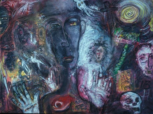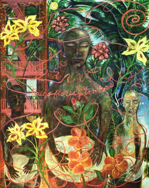 CO: The 1960s were a revolutionary time, musically and artistically. As a teenager, fortunately, I had the opportunity to be exposed to the power of change that was a part of the musical and artistic world at that time. I was listening to everybody. Jazz, Latin jazz, blues, rock, folk, salsa, Jimmy Hendrix, Bob Dylan, Carlos Santana and Nueva Cancion, a musical style in which Puerto Rican musicians combined their folk music with rock and roll. I listened to it all, and I felt that it blended well and expressed the dynamic realities of the children of immigrant Latinos growing up in New York. I became a part of that world, which was capable of an incredible integration of cultures, of deep synchronicity and of change and flux. Abstract expressionism and early neo-expressionism were forms being expressed in visual art at this time. That is why I work with polyrhythms. Unity is created when you seek harmony with diverse cultural influences and images. My art grew out of that. I was also interested in Eastern philosophy, which was becoming more prevalent among young people, especially Zen Buddhism. It was a time when Eastern philosophy was being introduced into America, a kind of East meeting the West. Different types of religions were becoming available to young people. The youth movement was powerful, and the people involved with it wanted to change the world, to create a more humane and compassionate society. There was a counter-culture among the youth, a movement away from established norms and the superficial consumerism and materialism of the 1950s. We wanted to break free of our parents' values, return to a collective spirituality and freely express ourselves.