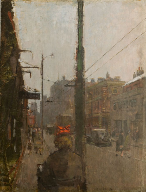 Ruskin Spear’s Winter (1940s) is a grey monochrome painting depicting a dark, dirty, dismal, dank and dreary city scene, with one slash of red – a woman’s hat – like the little girl in the red coat in Schindler’s List. Painted during the early years of the second world war, something of the same mood might be inferred. Ivon Hitchens’ Red Spring (1955), on the other hand, is a welcome explosion of colour, an abstract landscape, a confusion of lines conversing with one another, dabbed, smeared and mixed on the canvas.