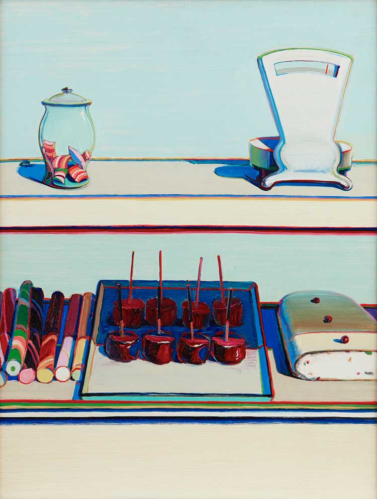 Wayne Thiebaud, Candy Counter, 1969. Oil on canvas, 120.7 x 91.8 cm. Private Collection © Wayne Thiebaud / VAGA at ARS, NY and DACS, London 2025