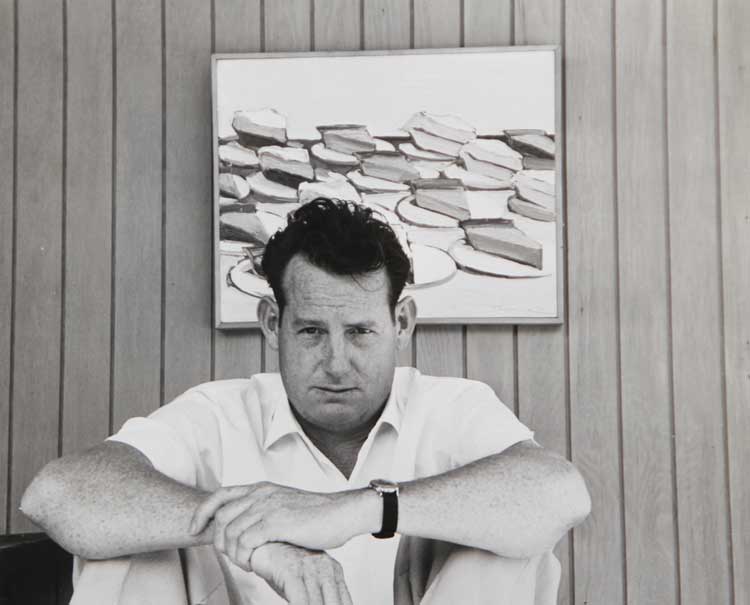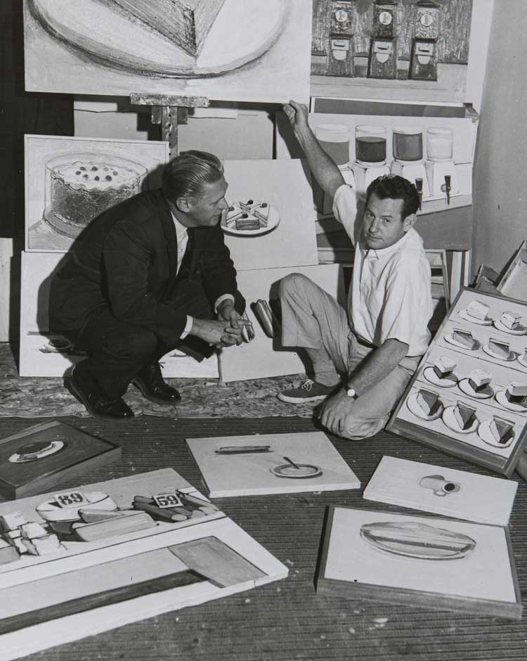 Wayne Thiebaud in his studio in Sacramento with Professor Paul Beckmann, 1962. Collection of the Wayne Thiebaud Foundation. © Wayne Thiebaud / VAGA at ARS, NY and DACS, London 2025.