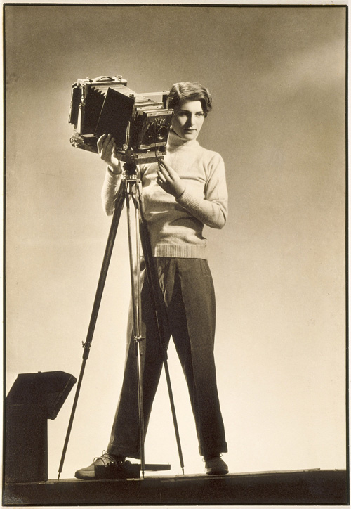 A woman gazes out of the frame, as she stands next to her camera. The scene is illuminated. As she tilts her lens towards her subject, she appears to have a natural confidence. This is a self-portrait of Margaret Bourke-White (1904-71), a staff photographer at Life magazine and a photojournalist during the second world war. One of her many talents was her brilliant use of flashlight photography in the 1930s.1 The portrait is among the captivating images currently on display in Who’s Afraid of Women Photographers? 1839-1945.