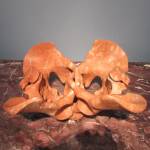 The artist and the museum found a brilliant solution to the problem. More than 30 of Delvoye’s works are scattered through the collection on the first and second floors of the museum among the antique, medieval, Renaissance, Baroque, 17th- and 18th-century painting and sculpture. Whenever possible, they are displayed together with objects from a period that visually corresponds to the work’s borrowed pattern or style. Delvoye’s early decorative saw blades, for example, are inconspicuously placed inside a case containing 17th-century Dutch porcelain; his gas canisters painted in the manner of Greek vases appear among antique statuary; and his Gothic truck forms part of the medieval display. Sometimes, as with the Coccyx works, which reproduce the human coxal bones in differing materials and sizes, the objects are put on top of marble tables that match them in material and colour.