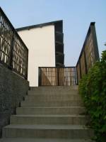 Being closer to the undulating landform of Xiangshan, the architectural massing blocks of Phase I are more geometric and controlled. A self-contained architectural operating system is employed here to create rectilinear blocks enclosing intimate courtyards of greenery, all oriented towards Xiangshan - a landform of respite and tranquillity. The blocks are rendered in an interplay of smooth, white-painted plaster wall and rough concrete texture wall in grey, with a fenestration of doors and windows in full-height tinted glass. This simple block is then topped with a dark grey traditional clay tile roof. The clean line and sharp edge of the block is further enriched by a series of sun-shading devices in the form of cantilevered steel-framed structures with clay roof tiles and bamboo underlay. The materiality of the architecture is given another layer of richness, as some façades of the teaching blocks are cladded entirely in timber. The result is a coherent, overall whole with each individual unit having distinctive features. When examined more closely, the architecture demonstrates close affiliation with folk buildings and their construction methods, and has its origins in the phenomenon of everyday life. The rough textured wall is formed by scrubbing the wet cement screed, creating an interesting 'spiky' texture, to which creepers can also cling. The handrail is a painted steel frame with an in-fill of 'weaved' timber strips. The traditional clay roof tiles lie upon contemporary steel frames. Time and again, one is confronted with the rawness and power of 'folk' architecture, subtly played up in a contemporary way.