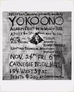 In 1971, Yoko Ono had an unofficial solo show entitled Museum of Modern (F)art at the Museum of Modern Art in New York. Even though the artist advertised the exhibition in the Village Voice and the New York Times, few people knew about it – least of all the museum’s administrators. People who came for the opening had trouble finding Ono’s work. As the visitors came back out of the building, a reporter spoke to them, explaining that Ono had released a swarm of flies into the air from the museum’s garden, and that this constituted a kind of “conceptual” art that the visitors could contemplate. The reporter was accompanied by a cameraman, who filmed their responses. The reaction of the art-going public to the exhibition/performance varied. Some were puzzled, finding a type of art that was literally “in the air” difficult to understand; some were indignant at being tricked by the artist; yet others claimed to like it. They must have understood that the performance conceived by Ono was not measured in the dimensions of space or, in fact, any of the material aspects traditionally associated with art – money, prestige, or extensive curatorial entourage. The performance existed not only in the act, but also in the reactions to the event, which, in this case, were purely verbal, “conceptual”.