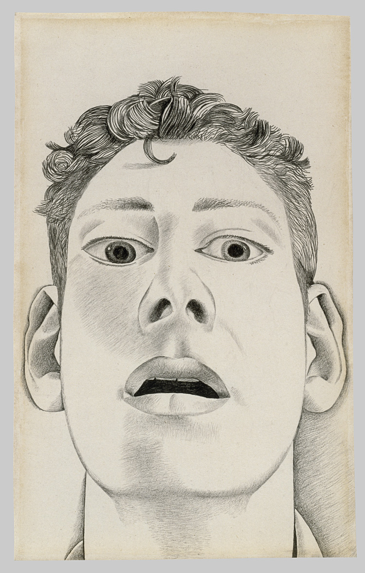 Lucian Freud. Startled Man: Self-portrait, 1948. Pencil on paper, 22.9 x 14.3 cm. Private collection. © The Lucian Freud Archive / Bridgeman Images.
