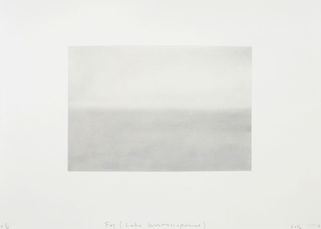 Such features are explored further in the Fog (Lake Wononscopomac) series, seven new pastel and pencil drawings depicting murky monochrome landscapes. Or so it would seem. As Finch explains: “Although they all appear ‘grey’ there is actually a wide range of colour in the drawings; fog, it turns out, is rather colourful.” Such mistaken perceptions are also gestured towards with the sculpture Lump (of concrete) Mistaken for a Pile (of dirty snow) #1, 2010, which sits ambiguously in the courtyard. Each foggy picture’s seeming featurelessness conceals details such as land, water and the horizon: through fog’s imposition of near-blindness, we are encouraged to look more carefully than ever. Finch explored the aesthetics of fog before in his earlier work Thank You, Fog (2009), and indeed much of this exhibition sees the artist revisiting well-trodden territory. Newcomers to Finch’s work will find The Opposite of Blindness an intriguing introduction to his ideas, while those more familiar may find themselves too comfortable.